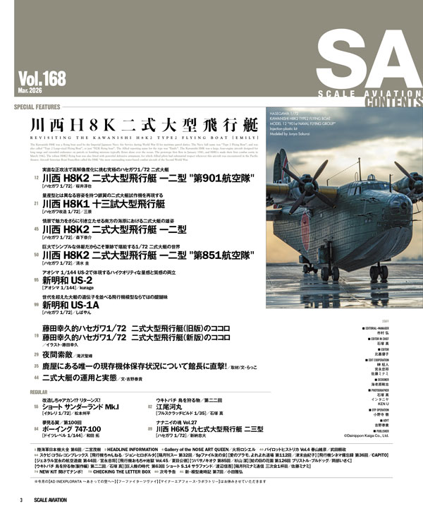 第二次世界大戦中、各国が運用した飛行艇の中でも屈指の性能を誇った川西 H8K 二式飛行艇。壮麗な姿で大海原を翔けた二式大艇の魅力を、模型誌ならではの視点で掘り下げてお届けします。